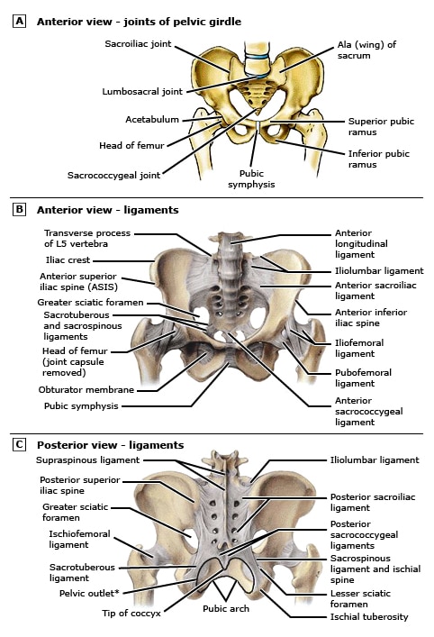 - Sínfise púbica: Articulação fibrocartilaginosa que une os dois ossos púbicos na linha média, permitindo uma pequena mobilidade e absorção de impacto.