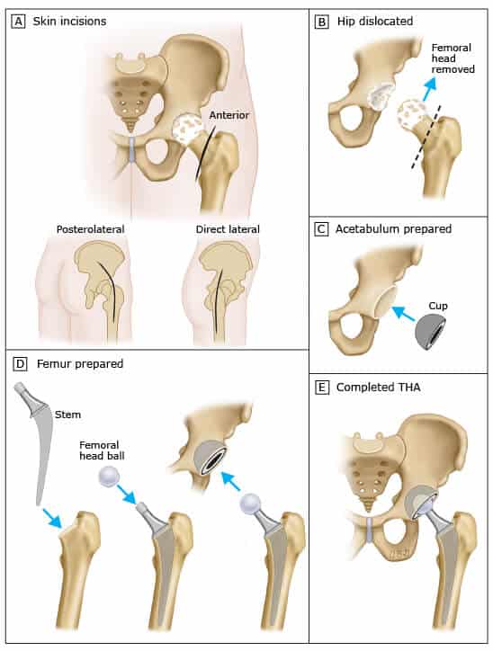 Realiza-se a técnica cirúrgica da ATQ através das abordagens posterolateral, lateral direta ou anterior, todas com bom resultado. Portanto, a escolha depende de qual abordagem o cirurgião se sente mais confortável.