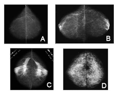A composição tecidual da mama é um fator crítico na interpretação das imagens, pois influencia a visibilidade de lesões. Classifica-se a a composição tecidual em quatro categorias: