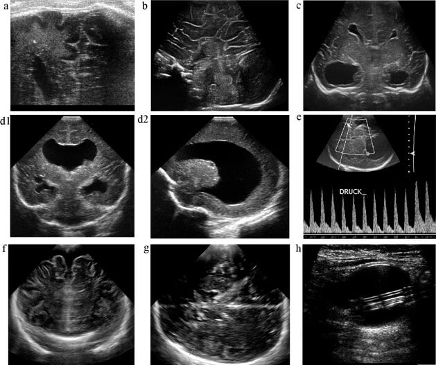 Nesse contexto, a ultrassonografia neonatal é útil não apenas para identificar a condição e avaliar a anatomia ventricular, mas também para graduar a hidrocefalia, distinguir casos com ou sem hipertensão intracraniana e monitorar a evolução ou resposta ao tratamento. Além disso, medições reprodutíveis do tamanho ventricular permitem comparações com valores normais para a idade, enquanto o prognóstico está mais relacionado à proporção entre parênquima e ventrículos.