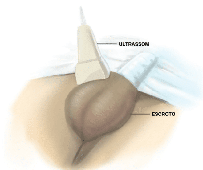A ultrassonografia é bastante útil na avaliação do volume testicular, na identificação de tumores testiculares de pequeno tamanho e ainda para avaliar a dilatação das veias do plexo venoso pampiniforme..